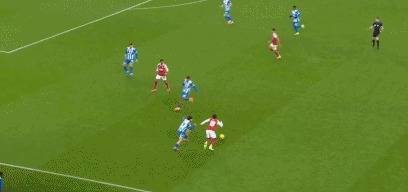 精彩进球:第57分钟,阿森纳中途落发互助,恩瓦内里低射破门
