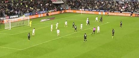 精彩进球:第89分钟,太空飞仙!吉滕斯凌空远射中柱后弹进球门